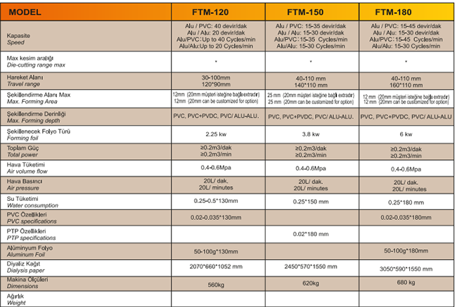Blisterleme makinası çok çeşitli aksesuarların ve isteğe bağlı ekstraların eklenmesine izin verir: • Soğuk şekillendirme • Ön kesici • Genişletilmiş besleme alanı