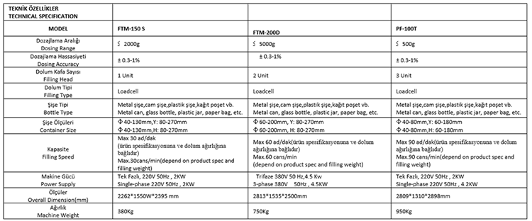 Tek Kafalı, Çift Kafalı ve Üç Kafalı Toz Dolum Makinası