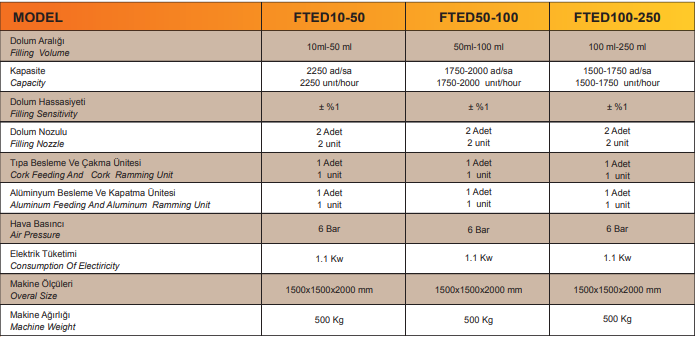 Çeşitli ebatlarda şişelere dolum yapan özel bir pompa yardımı ile dozajlamayı ayarlayan dijital ekranlı bir sistemdir Kabin içerisinde gerçekleşen dolum,tıpa çakma ve kapak kapatma işlemleri el değmeden konveyörün şişeyi alıp götürmesiyle başlar.