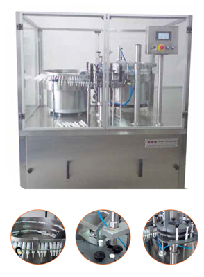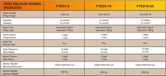 Makine volumetrik dolum sistemi ile çalışır. İsteğe göre ürünler kalıplara el ile ya da otomatik olarak beslenir. Dolum ünitesine giren ürünler dolum yapıldıktan sonra otomatik olarak kapattırılır.