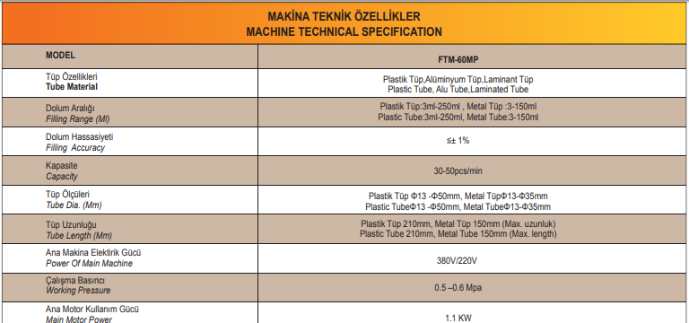 Otomatik Tüp Dolum ve Kapatma Makinası