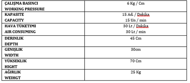 Her çeşit şişe valflerini ayak kumandası yardımıyla kapatır. Basınçlı hava ile çalışır.